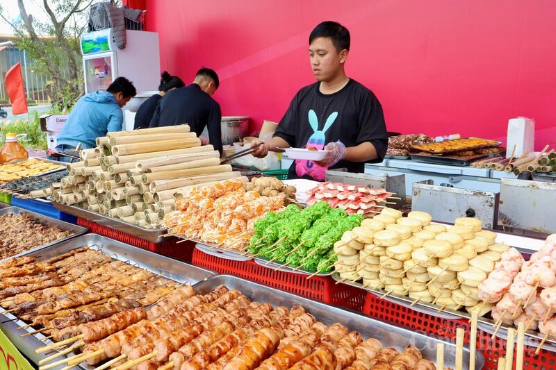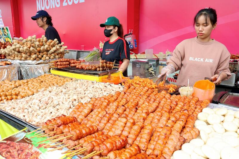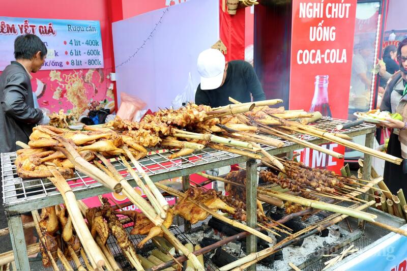 Các gian hàng ẩm thực phục vụ liên tục, đáp ứng nhu cầu ăn uống của đông đảo người dân và du khách. Ảnh: Quỳnh Trang