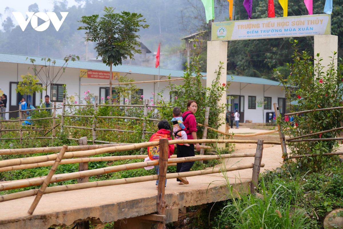 Xuân đang về trên những bản Mông miền biên xã Sơn Thủy, xã Na Mèo không chỉ bằng sắc hoa đào, hoa mận, mà còn bằng ánh điện sáng trong từng nếp nhà, bằng tiếng trẻ đọc bài trong lớp học mới, bằng những con đường dần nối dài qua sườn núi.