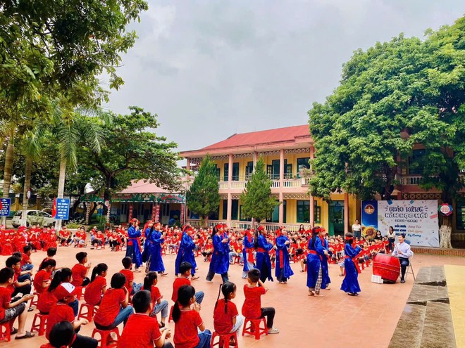 Các nghệ nhân truyền dạy múa cổ Xuân Phả tại trường học trong huyện