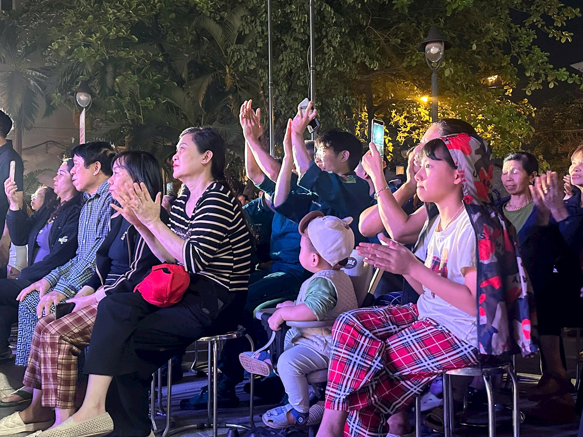 Đông đảo nhân dân phường Xuân Phương hào hứng thưởng thức biểu diễn. Ảnh: Bá Đức