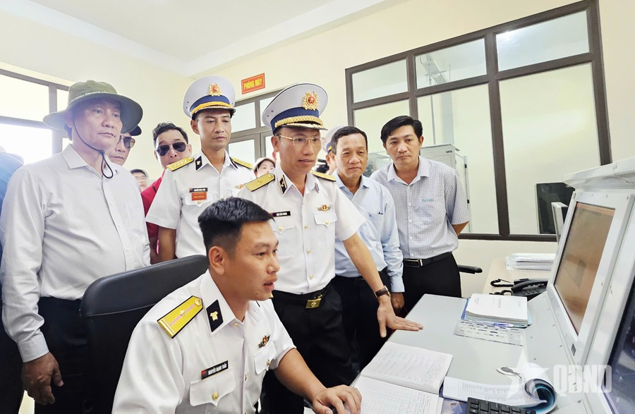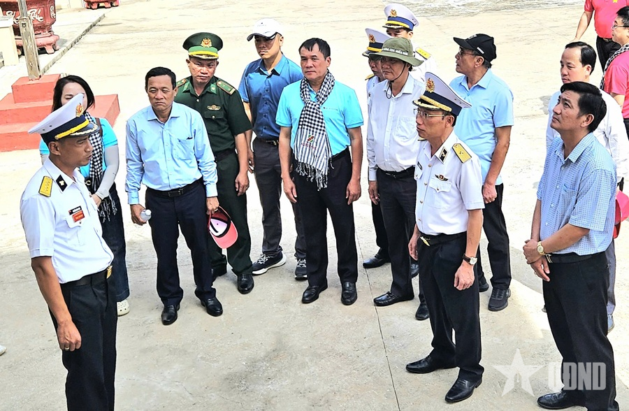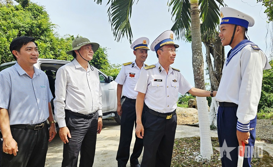 Chuẩn đô đốc Ngô Văn Thành, Bí thư Đảng ủy, Chính ủy Vùng 5 Hải quân và đoàn công tác thăm Trạm Radar 595.