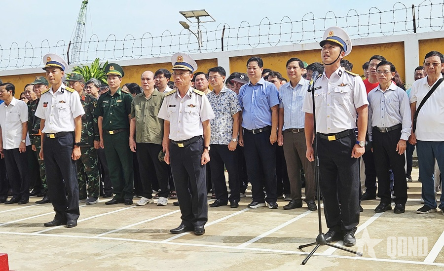 Lễ chào cờ tại Trạm Radar 595, Trung đoàn 551, Vùng 5 Hải quân.