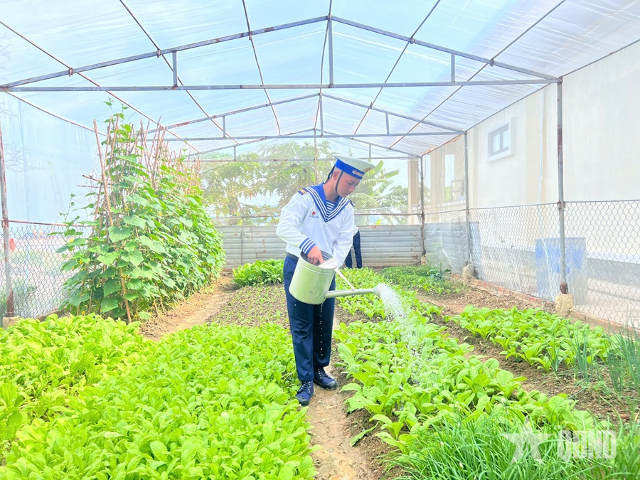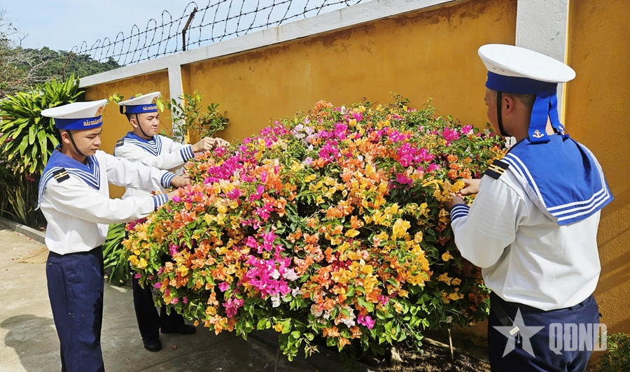Chiến sĩ Trạm Radar 595 chăm sóc cây hoa, cảnh quan.