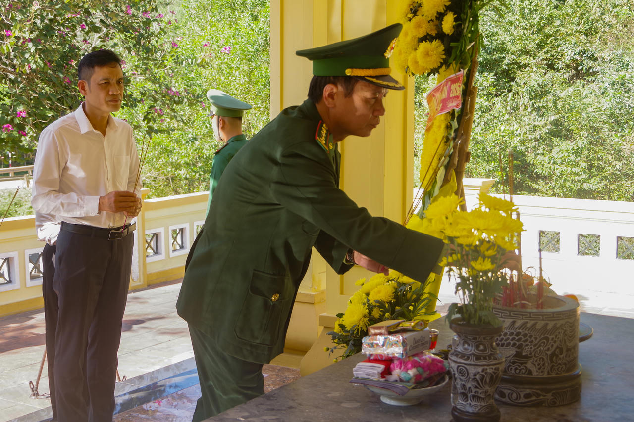 Đại tá Đinh Xuân Hùng, Chính ủy Ban Chỉ huy Bộ đội Biên phòng tỉnh dâng hoa, dâng hương tại Đồi Cha Quang.