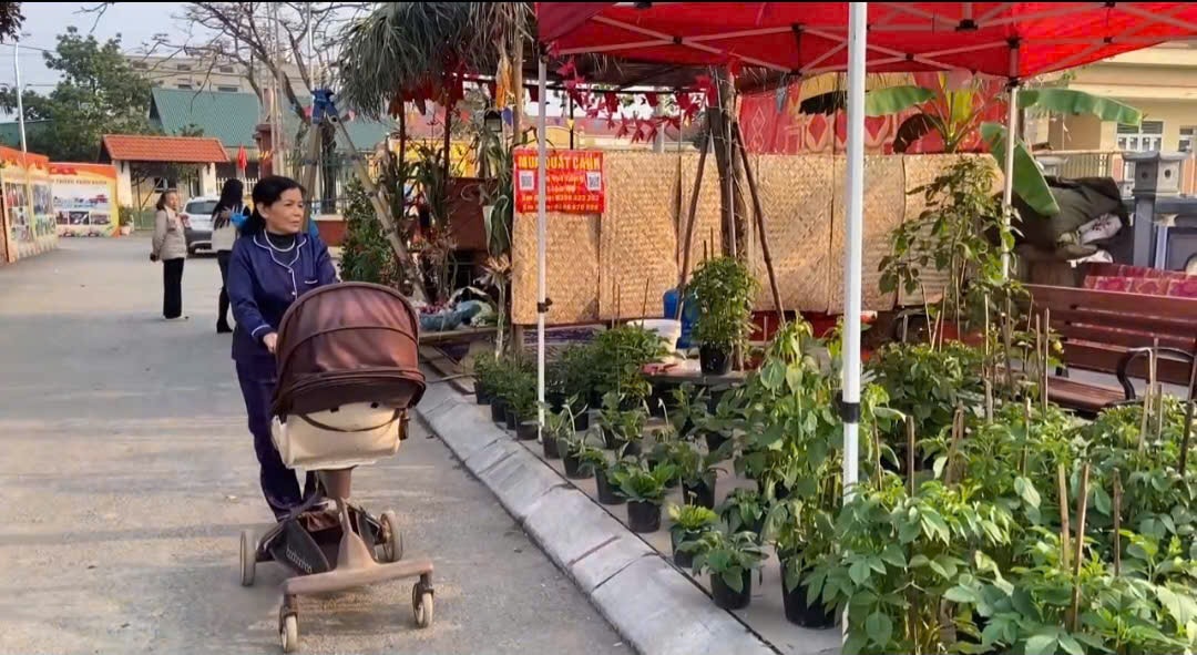 Những quán hàng bằng tre, mái lợp lá mộc mạc gợi nhớ về không gian làng quê xưa cũ. Mẹt tre, chum sành, bánh chưng xanh, cành đào phai… được sắp đặt khéo léo, hòa quyện cùng nụ cười rạng rỡ của người dân, tạo nên bức tranh Tết làng quê bình yên, ấm áp và đầy sức sống. Không chỉ là nơi thưởng lãm, đây còn là không gian giao lưu, gặp gỡ, để mỗi người dân được “chạm” vào Tết sớm ngay tại chính quê hương mình.