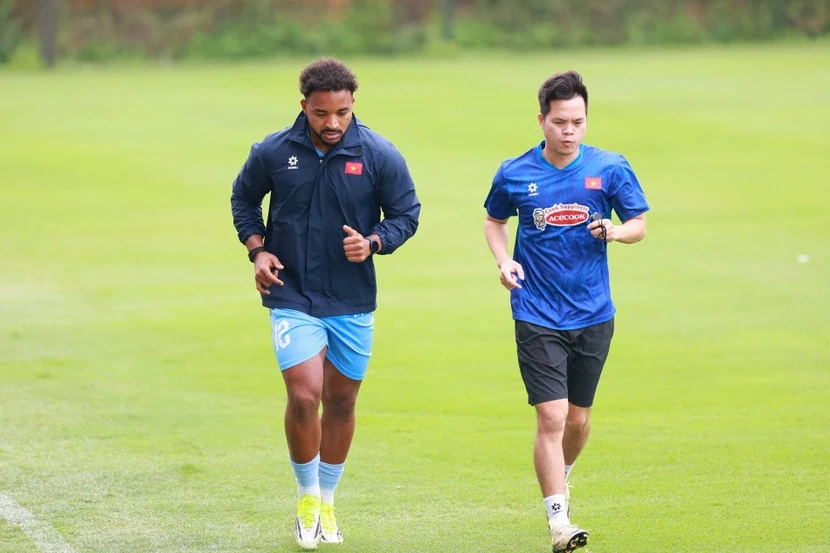 Xuân Son (trái) vẫn phải tập riêng cùng bác sĩ ĐT Việt Nam (Ảnh: VNN)