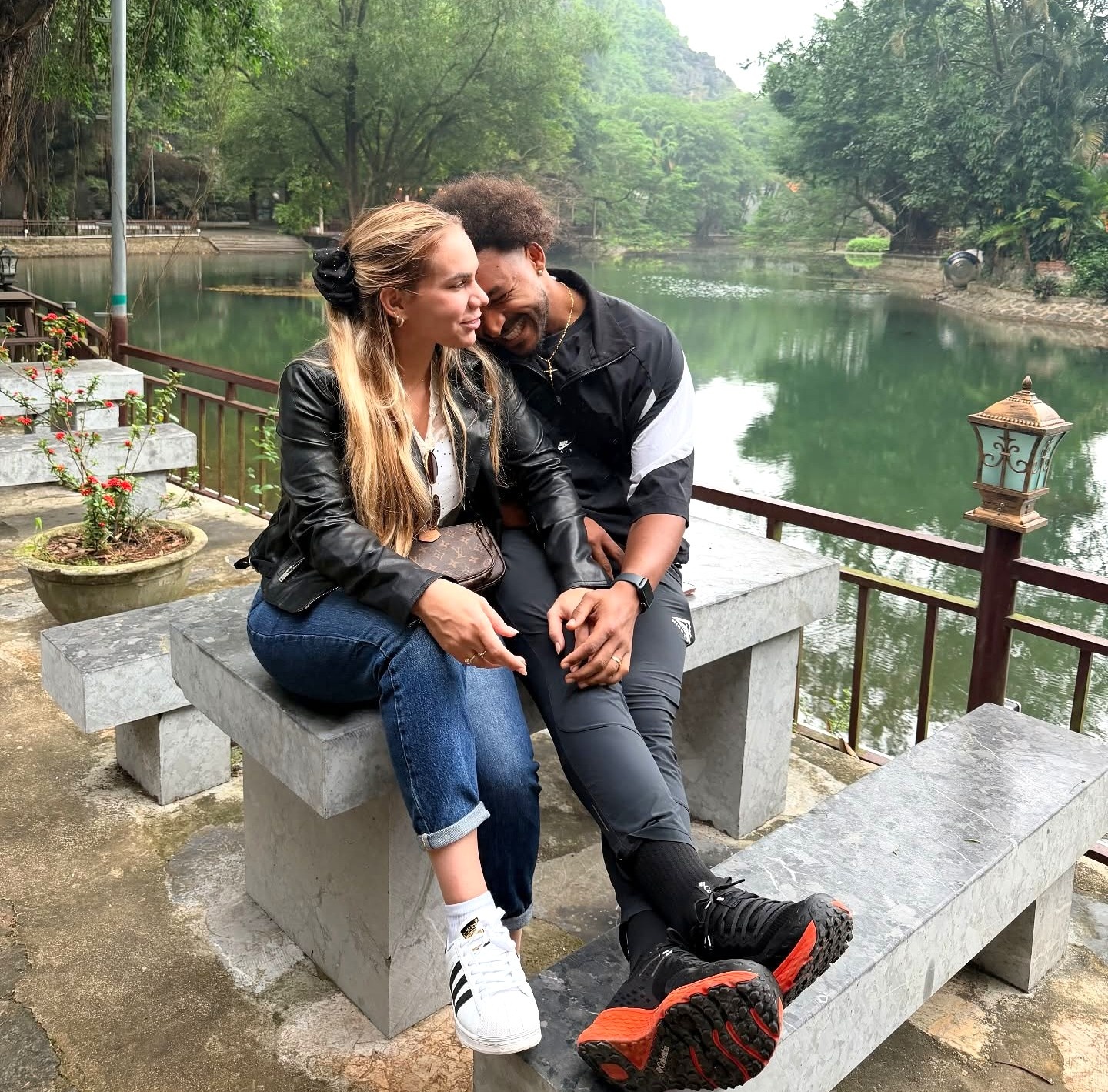 Chiều 30/10, Nguyễn Xuân Son chia sẻ trên trang cá nhân những hình ảnh cùng vợ trong chuyến du lịch tại Ninh Bình. Trong khung hình, nơi cả hai dừng chân là núi non trùng điệp. Tiền đạo sinh năm 1997 khoác áo thể thao tối màu, nở nụ cười rạng rỡ khi ôm vai người bạn đời trong khung cảnh yên bình.