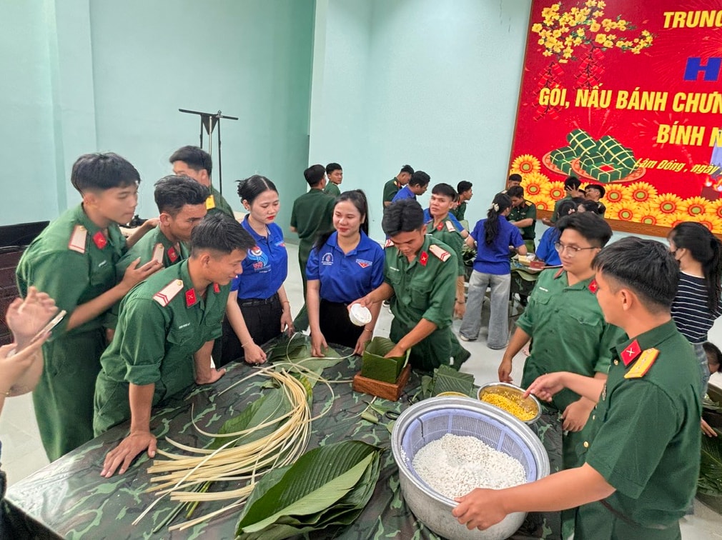 Với thi gói bánh chưng, từ khâu lựa chọn nguyên liệu như nếp, đậu xanh, thịt heo, lá dong đến công đoạn gói và nấu bánh đều được chuẩn bị chu đáo, bảo đảm chất lượng và an toàn vệ sinh thực phẩm. Những đồng bánh chưng xanh mướt, vuông vức, chắc tay không chỉ thể hiện sự khéo léo, tinh thần trách nhiệm của bộ đội mà còn góp phần giữ gìn, phát huy nét đẹp văn hóa truyền thống mỗi dịp Tết đến, xuân về.