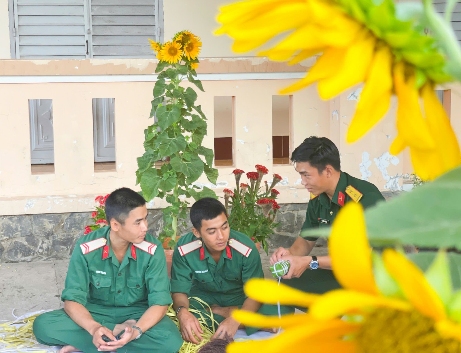 Khuôn viên Đại đội 6 rộn ràng trong không khí gói bánh và sắc hoa.