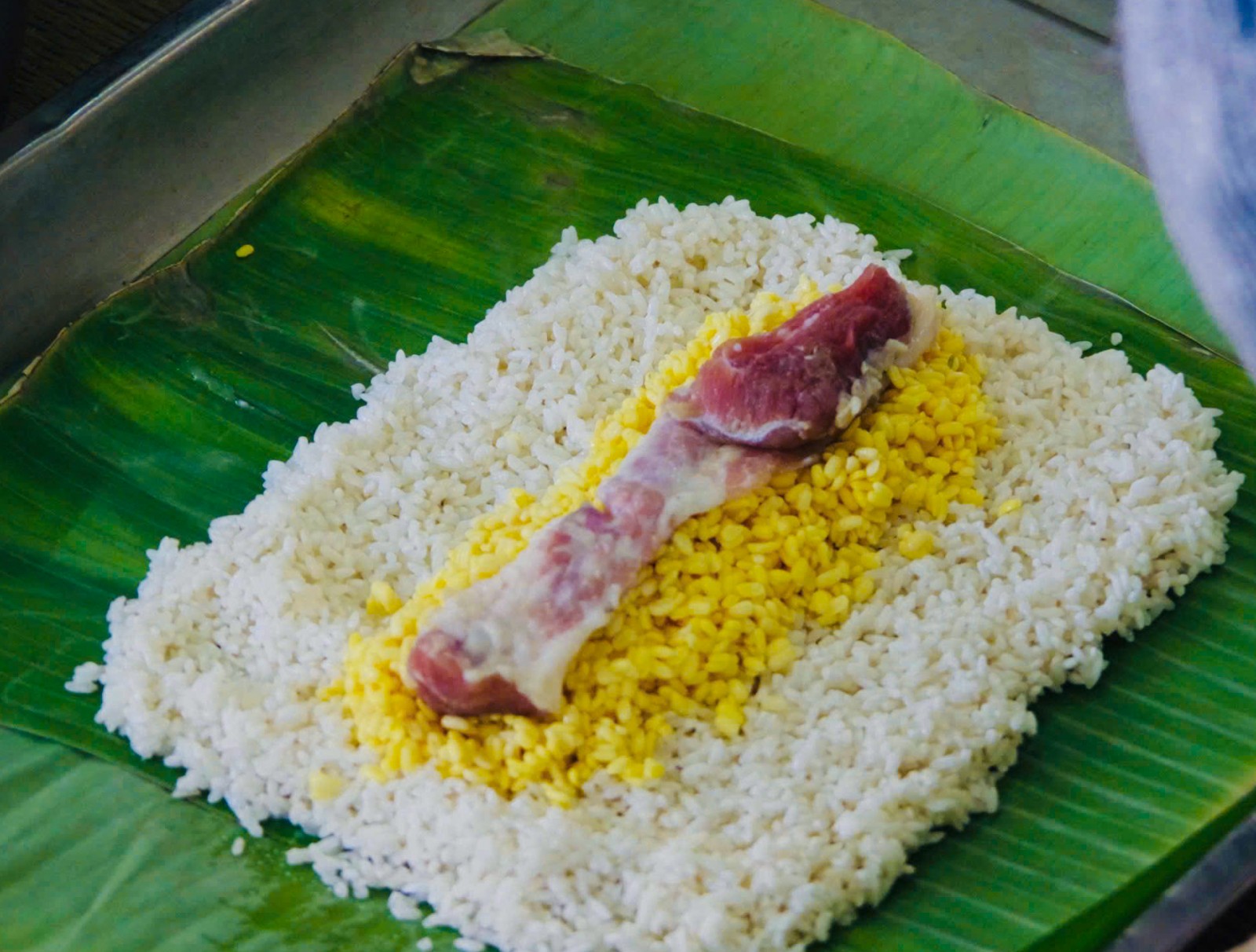 Đậu xanh vàng ươm quyện cùng thịt ba chỉ đậm đà.