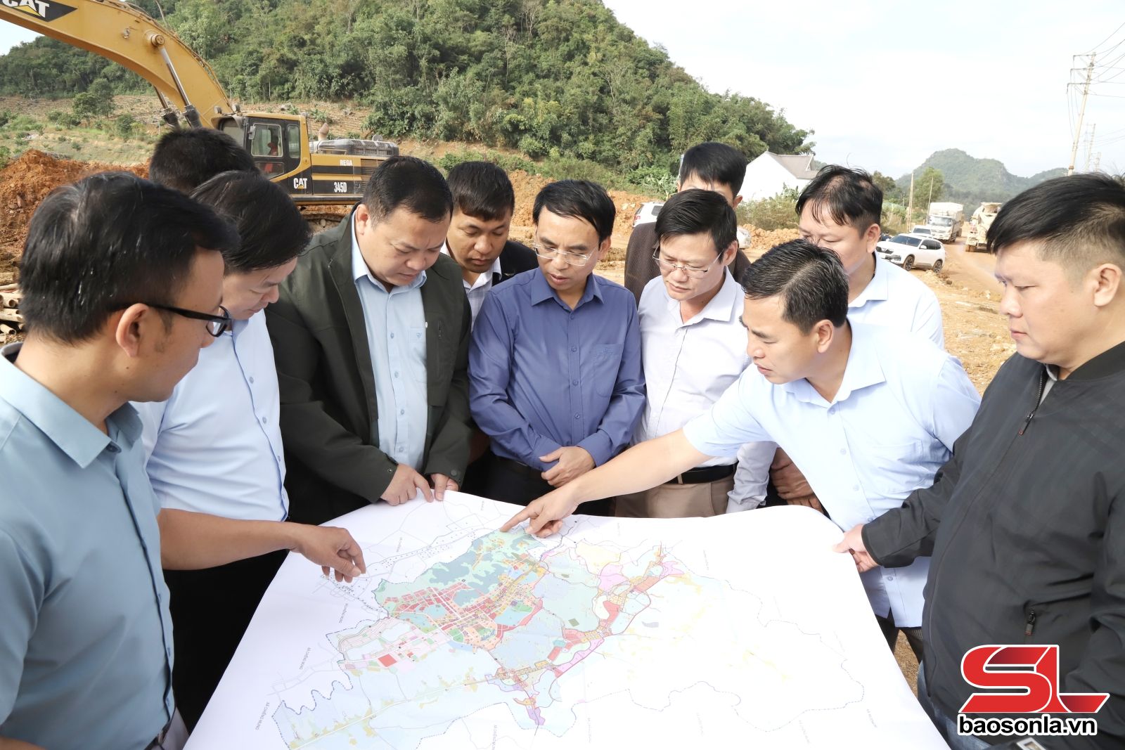 Đồng chí Nguyễn Minh Tiến, Phó Chủ tịch UBND tỉnh kiểm tra Dự án tuyến đường Chiềng Sinh - Chiềng Ngần.