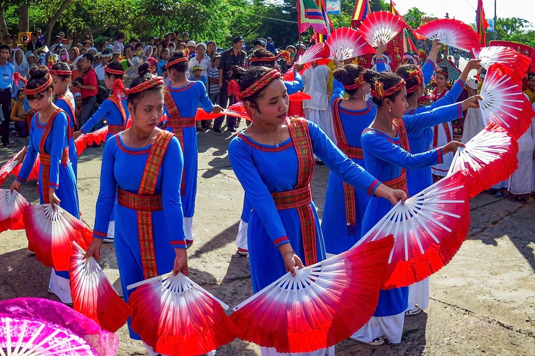 Thiếu nữ Chăm múa quạt tại Lễ hội Katê. Ảnh: Ngọc Lân