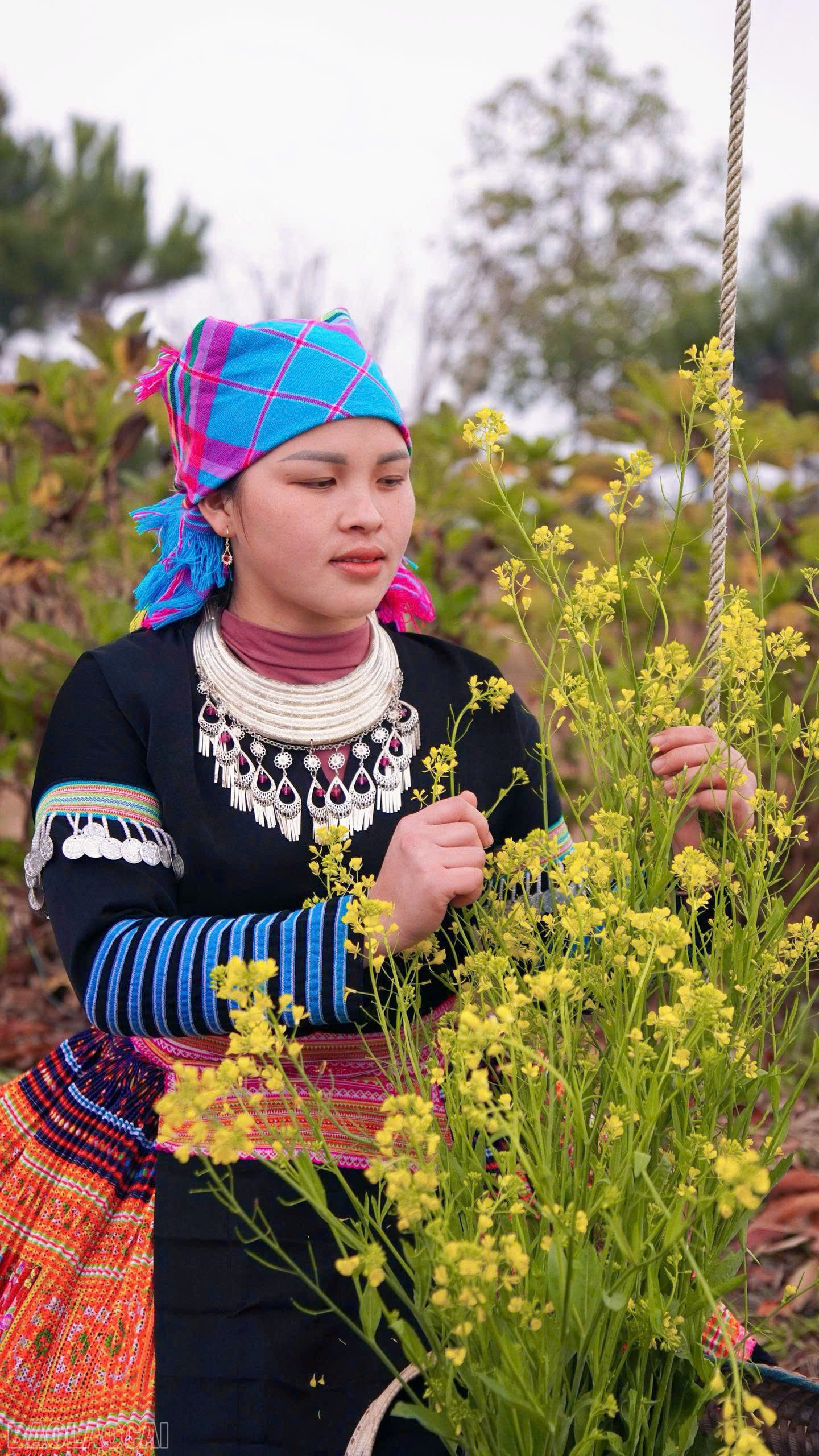 Hoa cải vàng - loài hoa gắn bó với nương rẫy của người Mông mỗi độ xuân về cũng nở rộ, tô điểm thêm sắc màu cho rẻo cao.