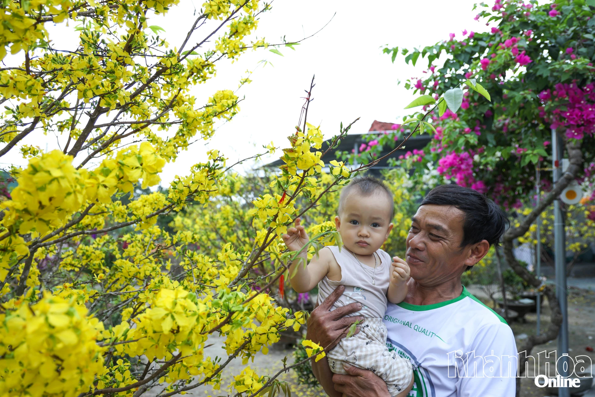 Ông Nguyễn Phúc Huy (xã Diên Thọ) cùng cháu vui mừng đón xuân mới đang gần kề.