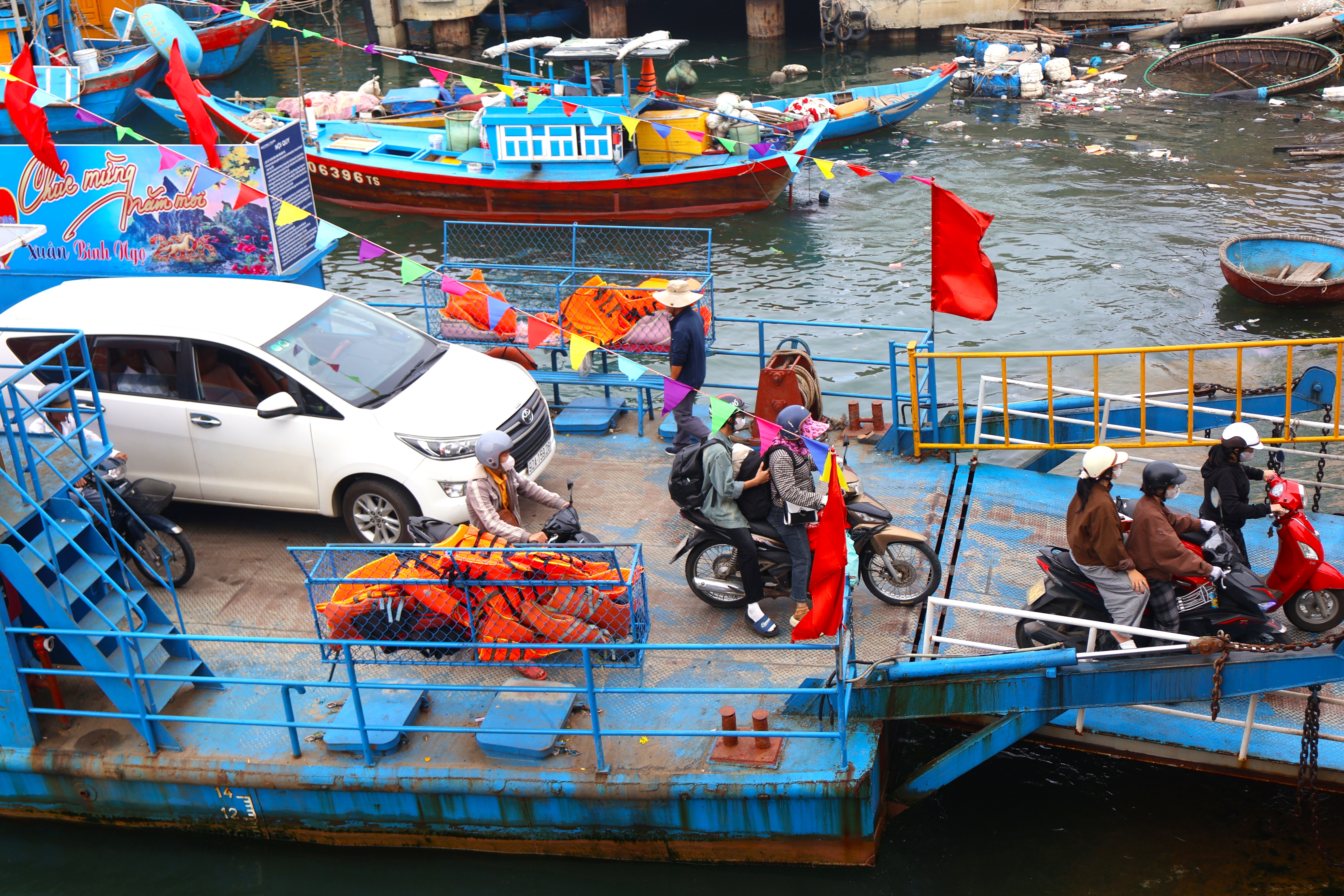 Bến phà nối đất liền với xã đảo Tam Hải trở thành điểm nhộn nhịp nhất trong những ngày cận tết