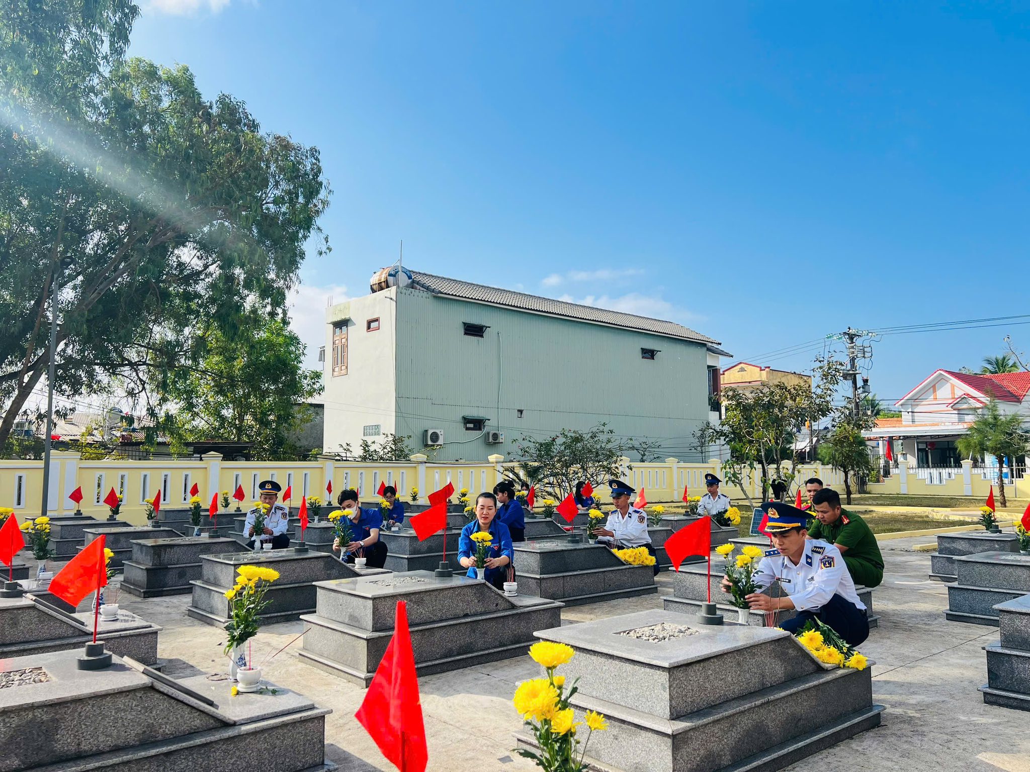 Cán bộ, chiến sĩ Hải đoàn 21 cùng Đoàn xã Tam Hải chỉnh trang, dâng hương, dâng hoa tưởng niệm tại Nghĩa trang liệt sĩ xã Tam Hải