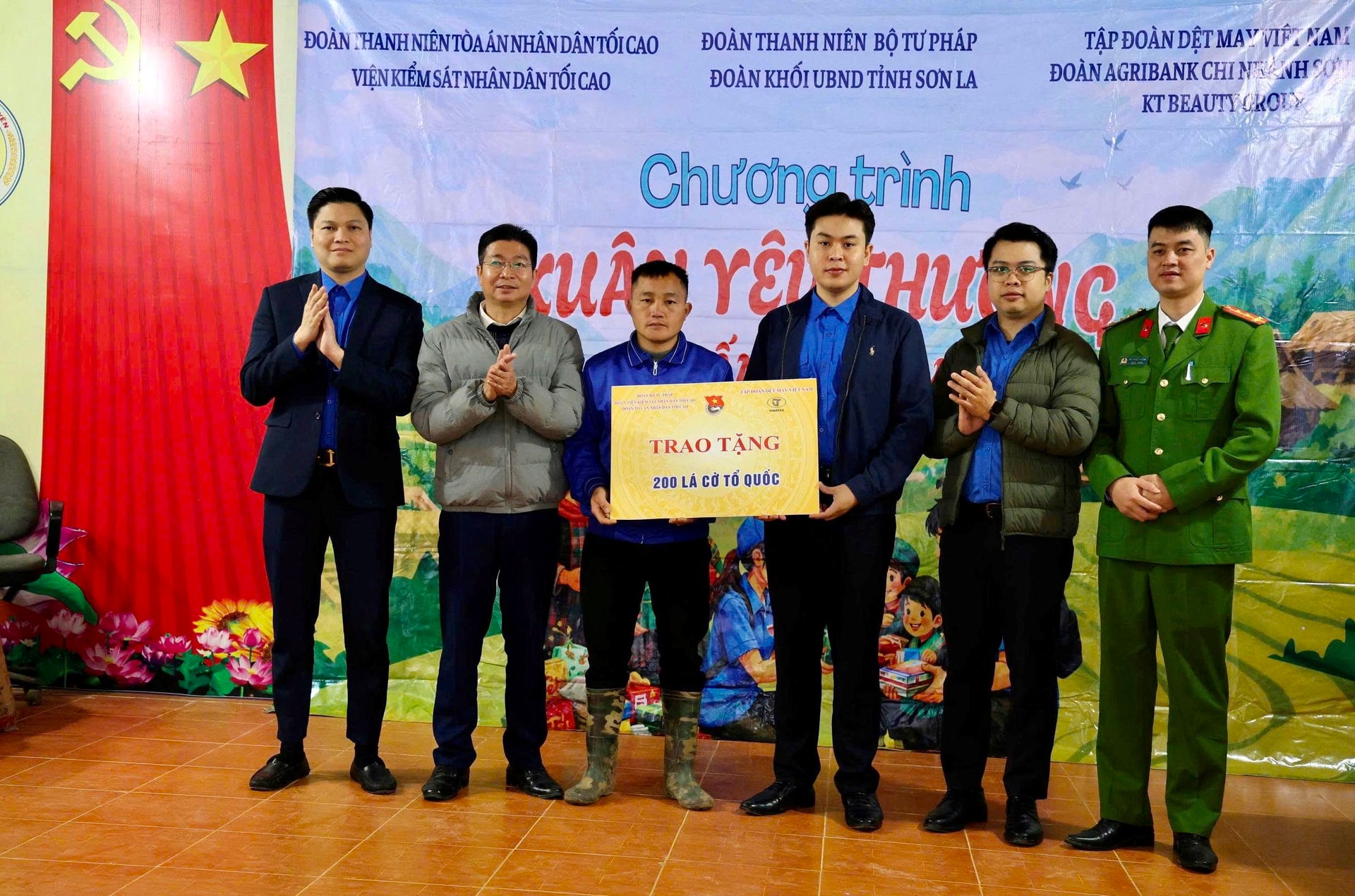 Đoàn thiện nguyện trao tặng 200 lá cờ Tổ quốc phục vụ xây dựng tuyến đường cờ tại xã Suối Tọ