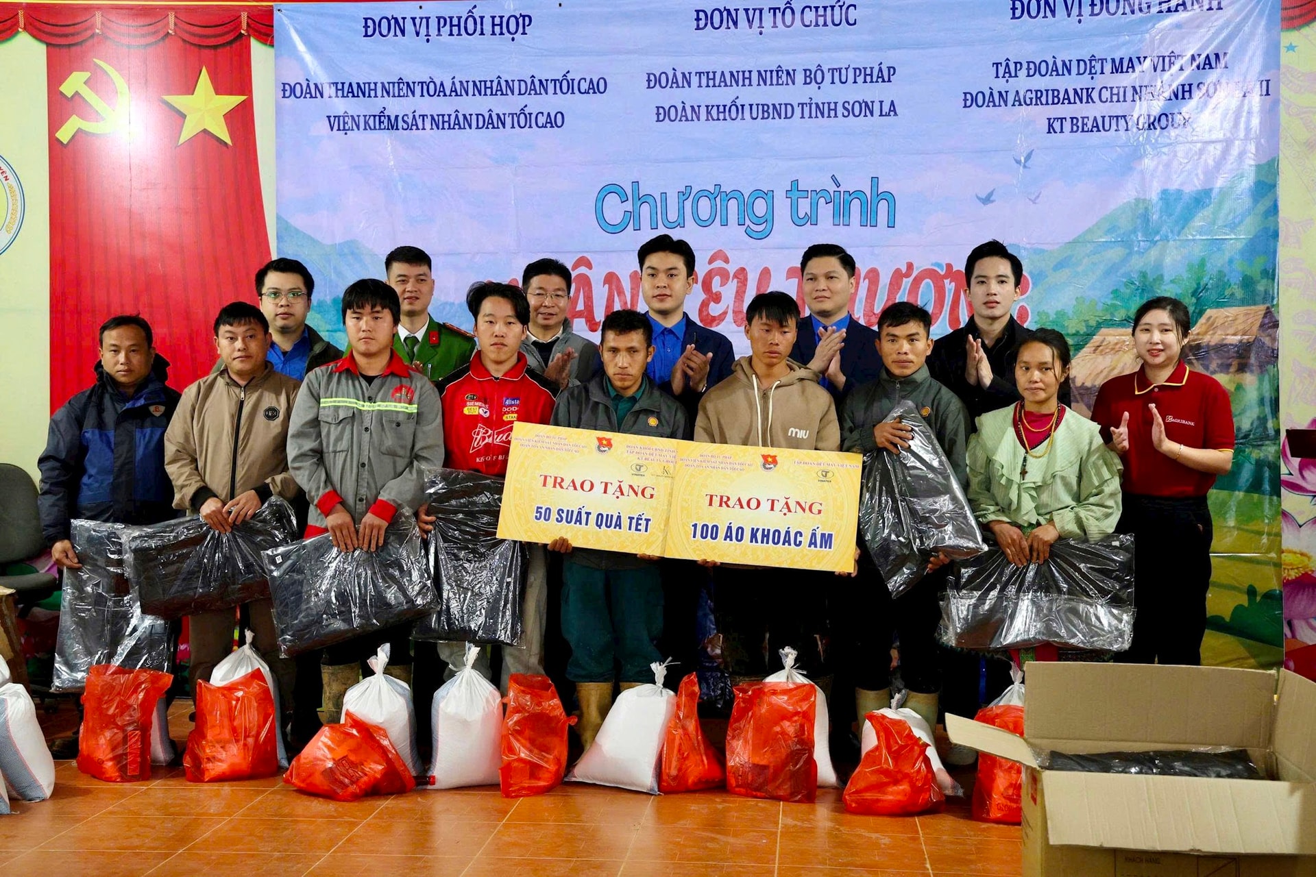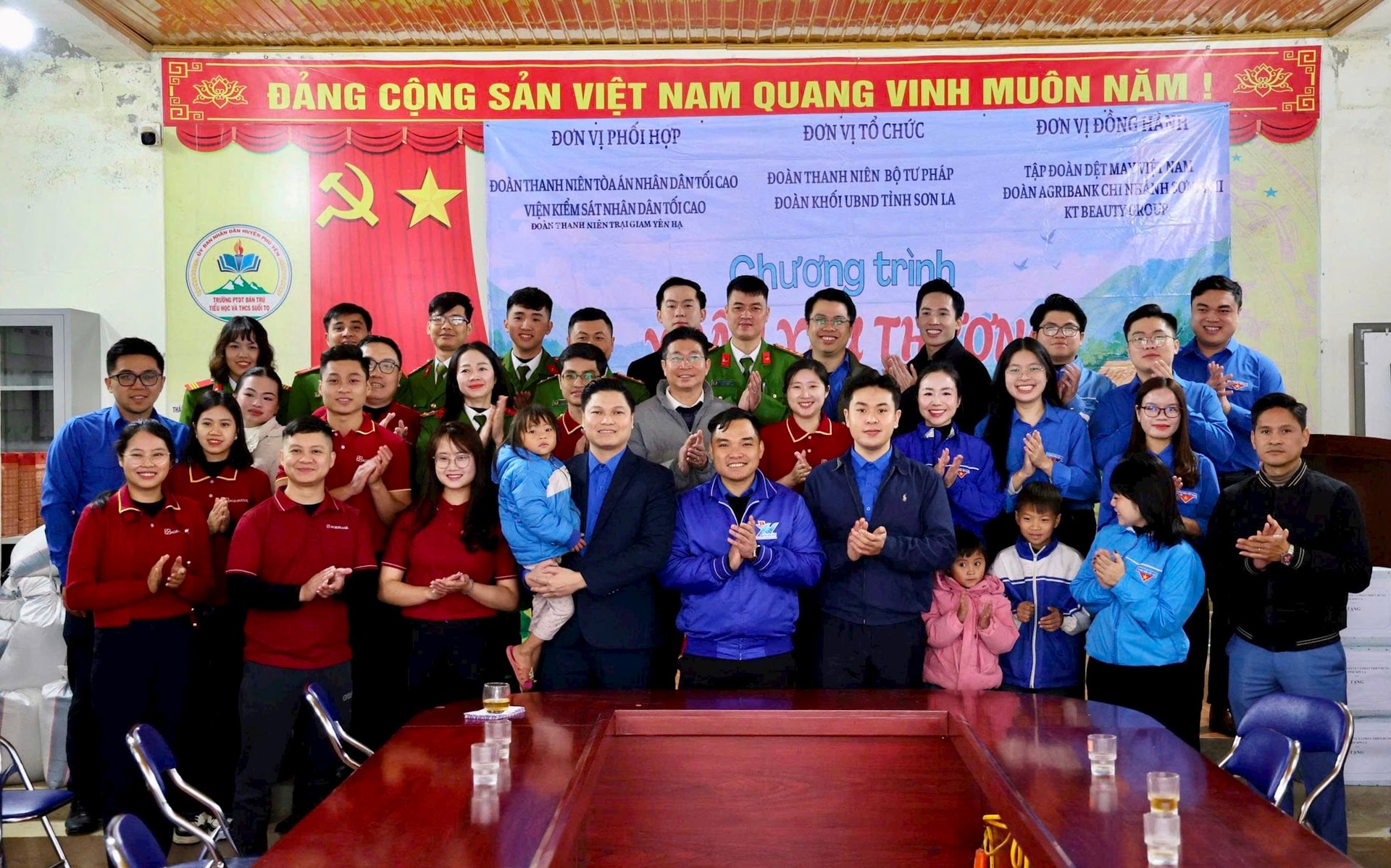 Tại chương trình, Ban tổ chức đã trao hỗ trợ 10 triệu đồng cho 2 công chức tư pháp có hoàn cảnh khó khăn; trao 50 suất quà Tết trị giá 25 triệu đồng và 50 áo khoác ấm cho các hộ gia đình khó khăn; trao 60 suất học bổng trị giá 30 triệu đồng cho học sinh có hoàn cảnh đặc biệt khó khăn. Đồng thời, trao kinh phí 50 triệu đồng hỗ trợ xóa nhà tạm, nhà dột nát cho 1 hộ gia đình dân tộc thiểu số; trao tặng 200 lá cờ Tổ quốc phục vụ xây dựng tuyến đường cờ tại xã Suối Tọ.