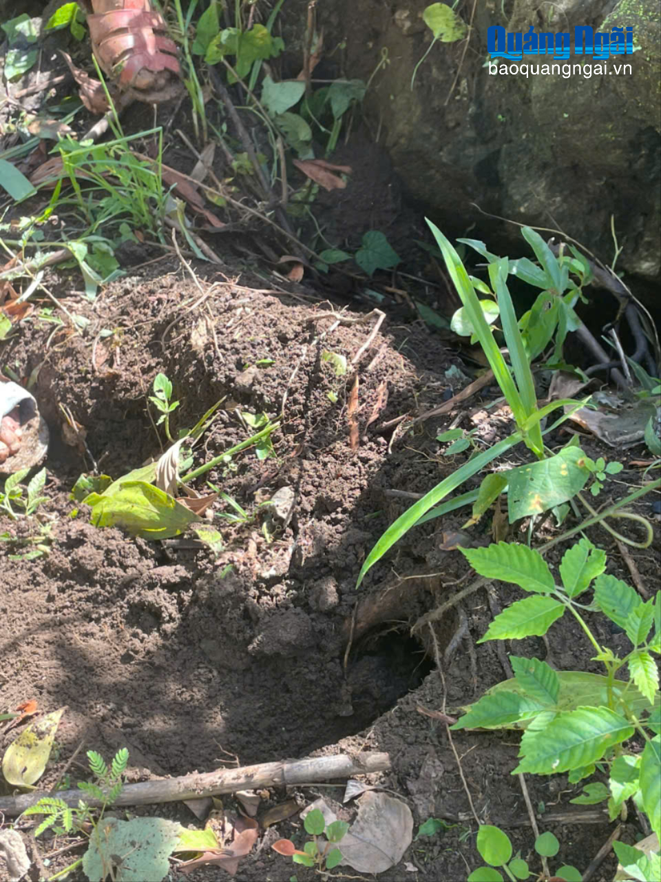Vị trí thứ 3 cách vị trí 2 khoảng 150m, xuất hiện hố tụ rộng khoảng 8m2, nước chảy từ trên cao về hố tụ không tràn ra ngoài mà thấm vào lòng đất, qua kiểm tra ban đầu đánh giá địa chất phía dưới hố tụ rất yếu.