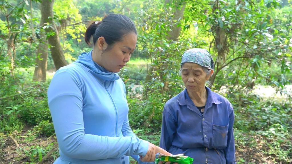 Cán bộ Trung tâm Dịch vụ tổng hợp xã Hòa An hướng dẫn người dân sử dụng thuốc bảo vệ thực vật an toàn phòng, chống sâu bệnh trên cây trồng.