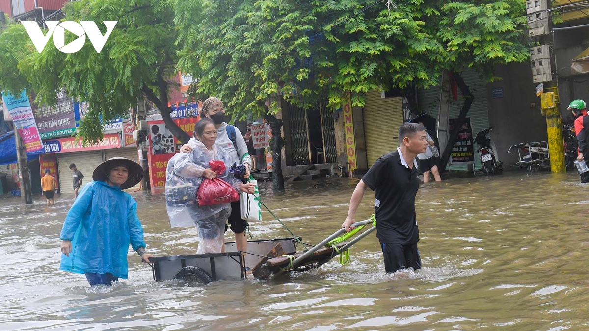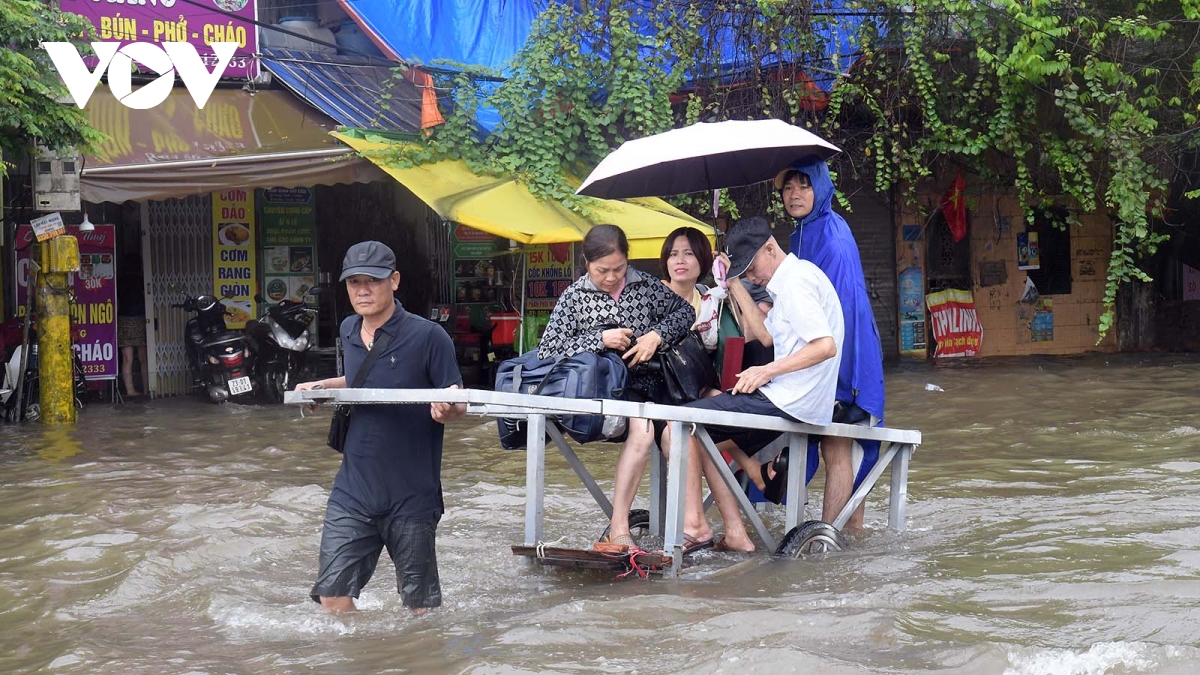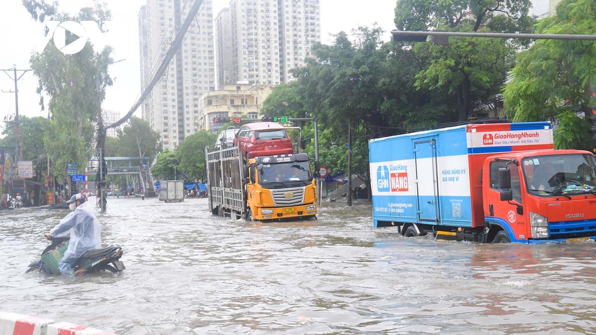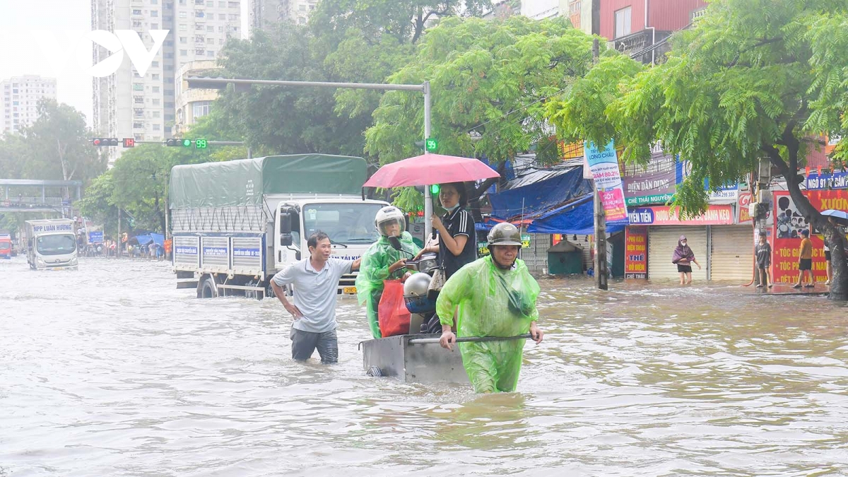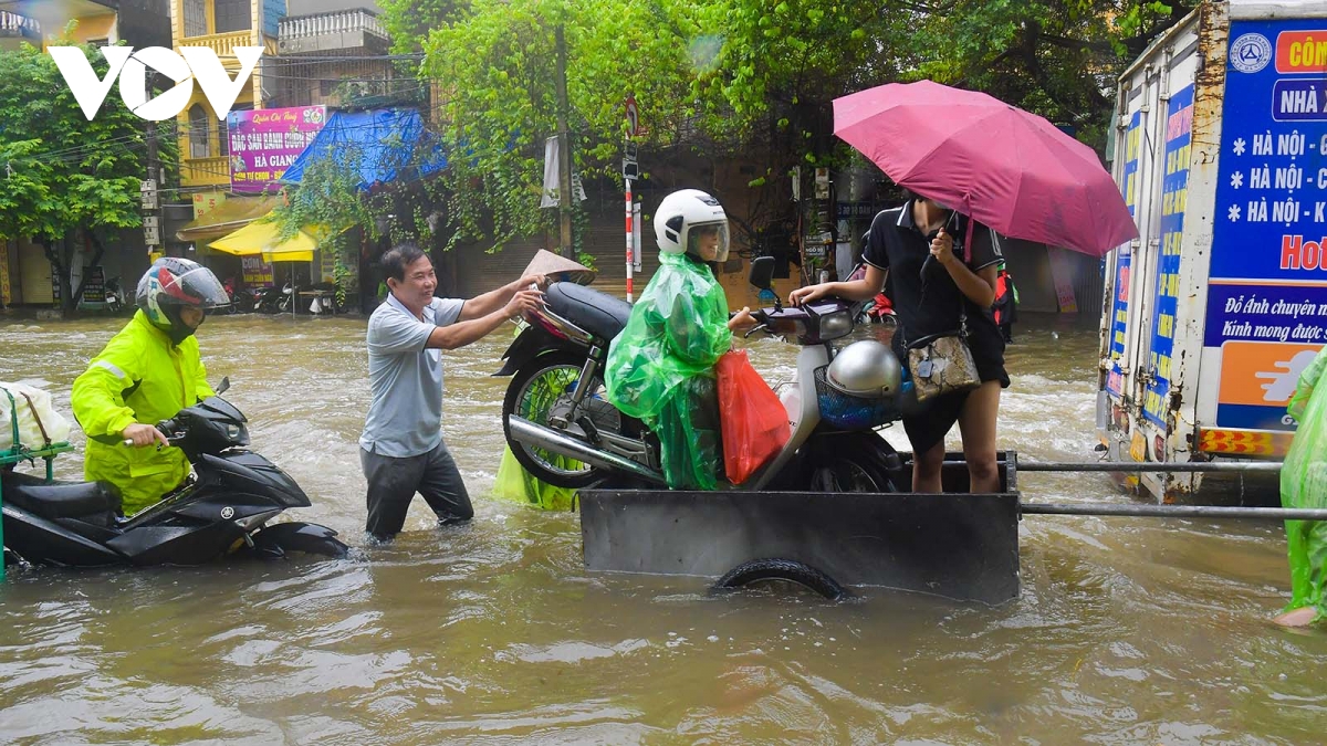 Do ảnh hưởng của hoàn lưu bão số 10, trong hai ngày (30/9 và 1/10) tại Hà Nội xảy ra mưa lớn kéo dài khiến nhiều khu vực bị ngập sâu khiến người và phương tiện di chuyển rất khó khăn.