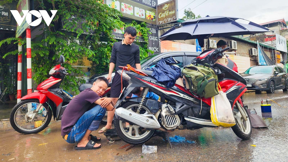 Những xe bị chết máy qua khu vực ngập sâu, chủ phương tiện phải chi trả số tiền từ 100.000-300.000 đồng khi phải vào các cửa hàng để thợ sửa chữa.