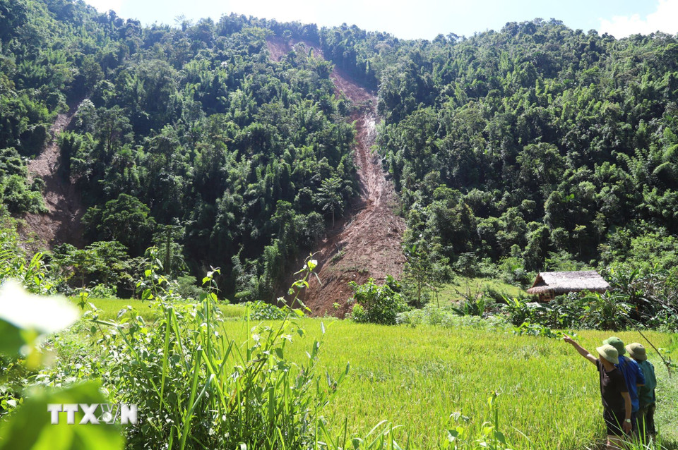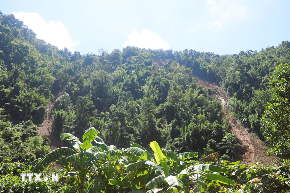 Cung sạt lở hình vòm khổng lồ xuất hiện trên núi. (Ảnh: Xuân Tiến/TTXVN)