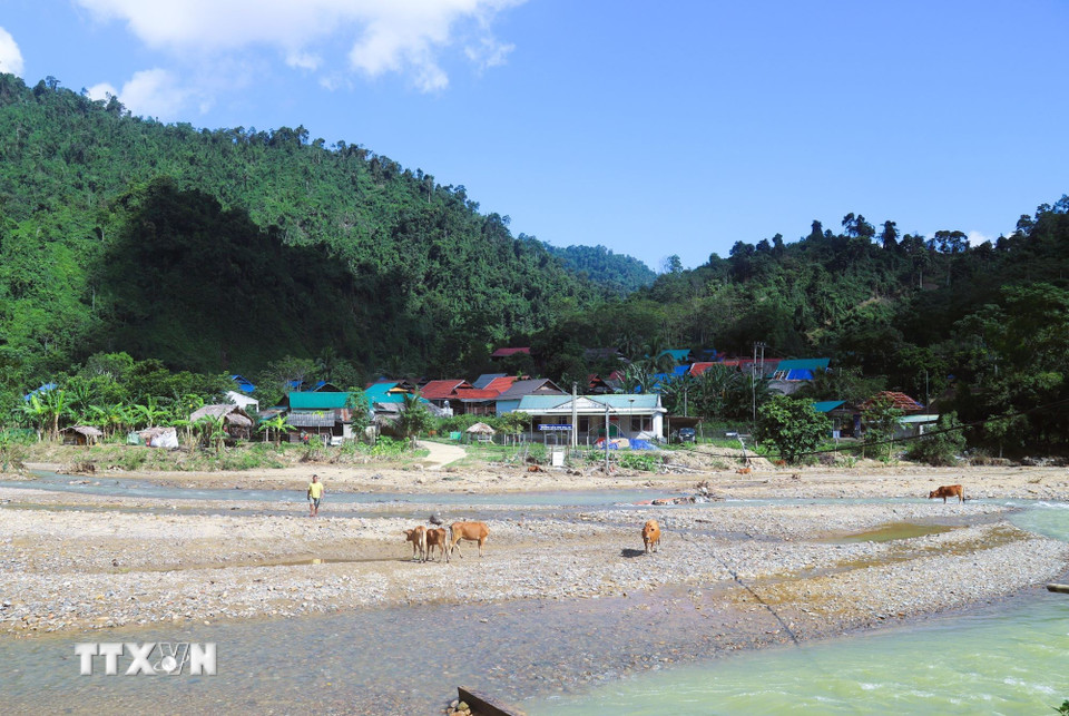 Bản Nậm Ngân nằm trong thung lũng, dưới chân dãy núi Pù Hiêng. (Ảnh: Xuân Tiến/TTXVN)