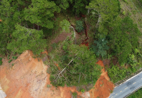 Xuất hiện nhiều vết nứt lớn trên đồi thông, phía taluy dương Quốc lộ 20.
