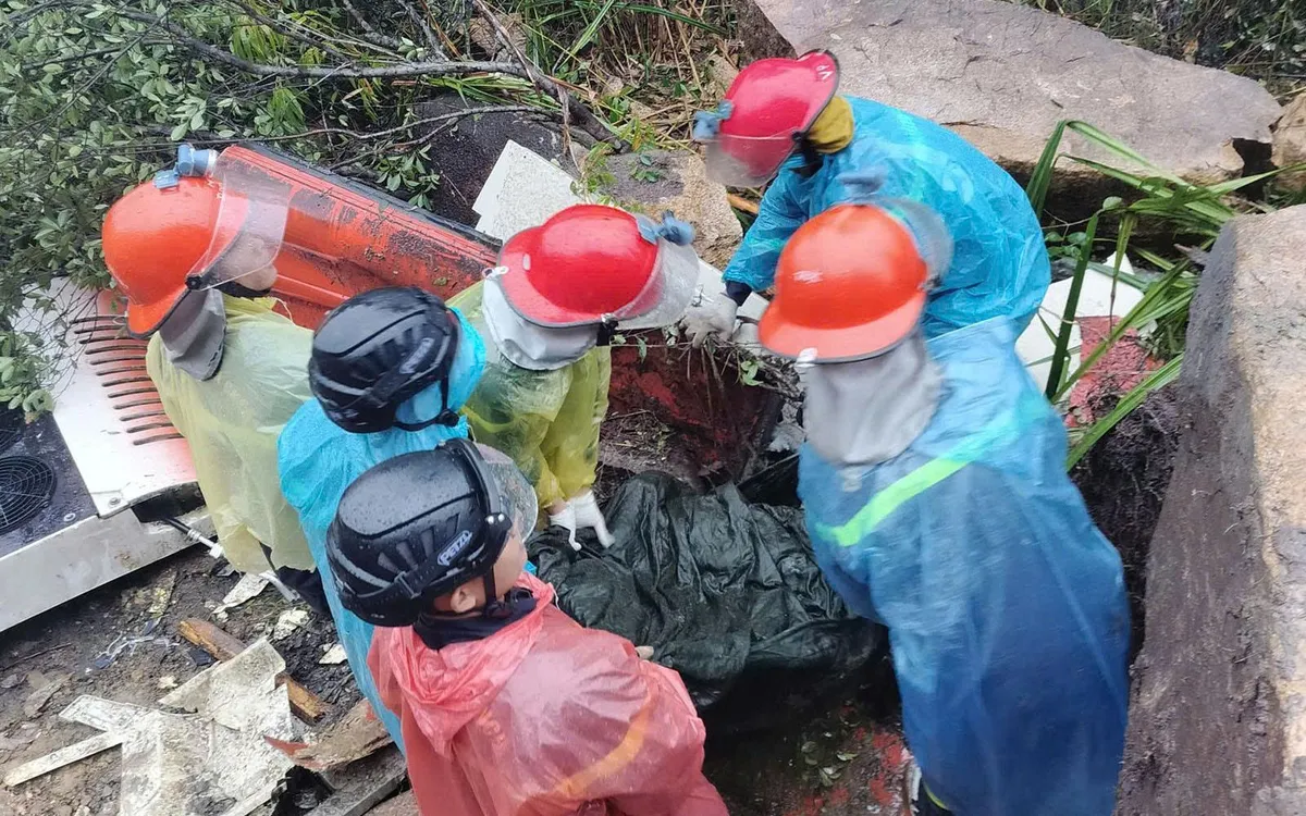 Trước đó, vào lúc 9 giờ 30 phút, lực lượng cứu hộ đã tiếp cận xe khách và đưa được 2 thi thể cuối cùng ra ngoài. Do thi thể không còn nguyên vẹn, các chiến sĩ phải thu gom trong điều kiện thời tiết xấu và địa hình mất ổn định.