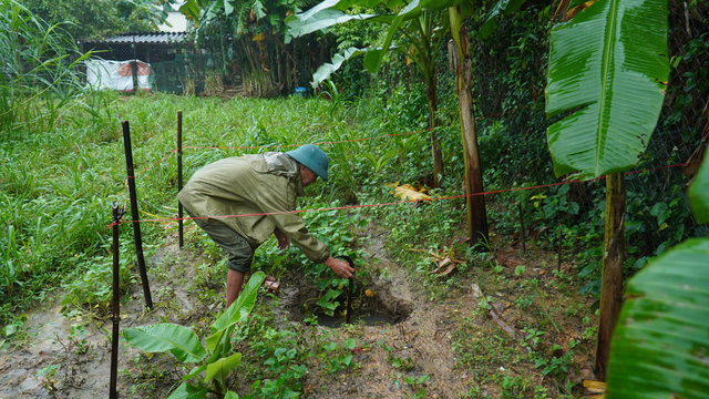 Hố sụt xuất hiện trong vườn nhà dân sau đợt mưa lớn. (Ảnh: Đ.N.).