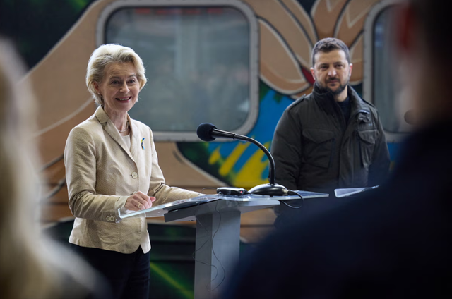Chủ tịch Ủy ban châu Âu Ursula von der Leyen và Tổng thống Ukraine Volodymyr Zelensky ở Kiev, năm 2023. Ảnh: Belga News Agency