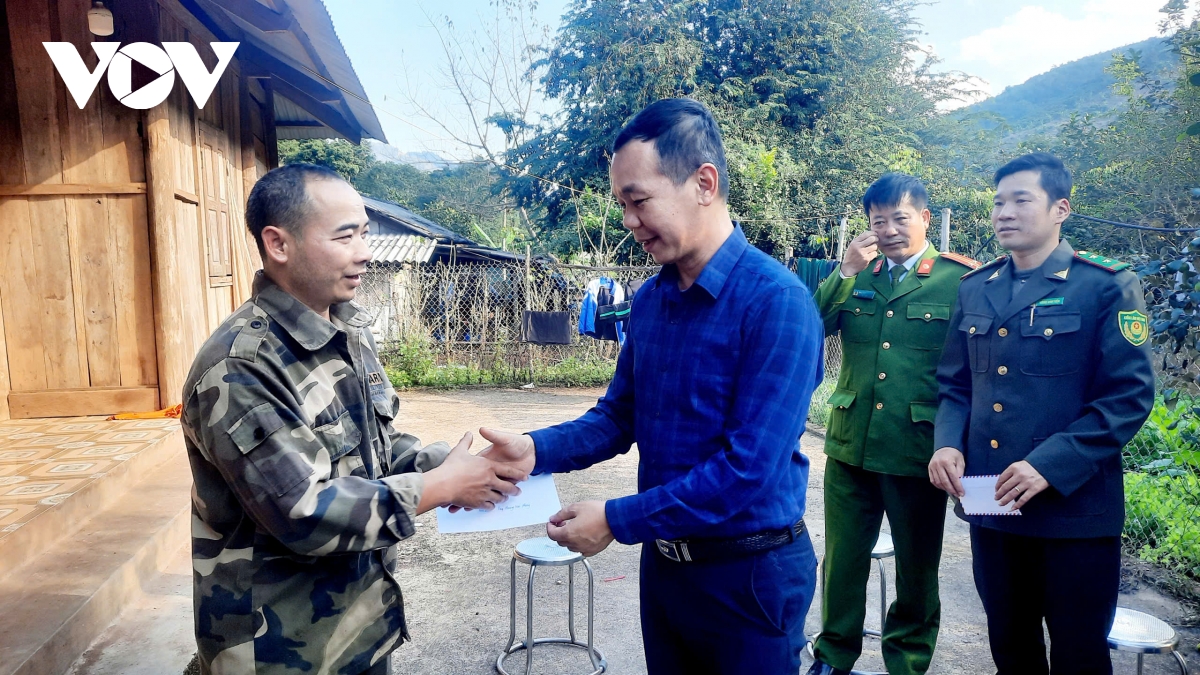 Chính quyền UBND xã Chiềng Hặc thăm hỏi, động viên các nạn nhân bị khỉ hoang dã tấn công.