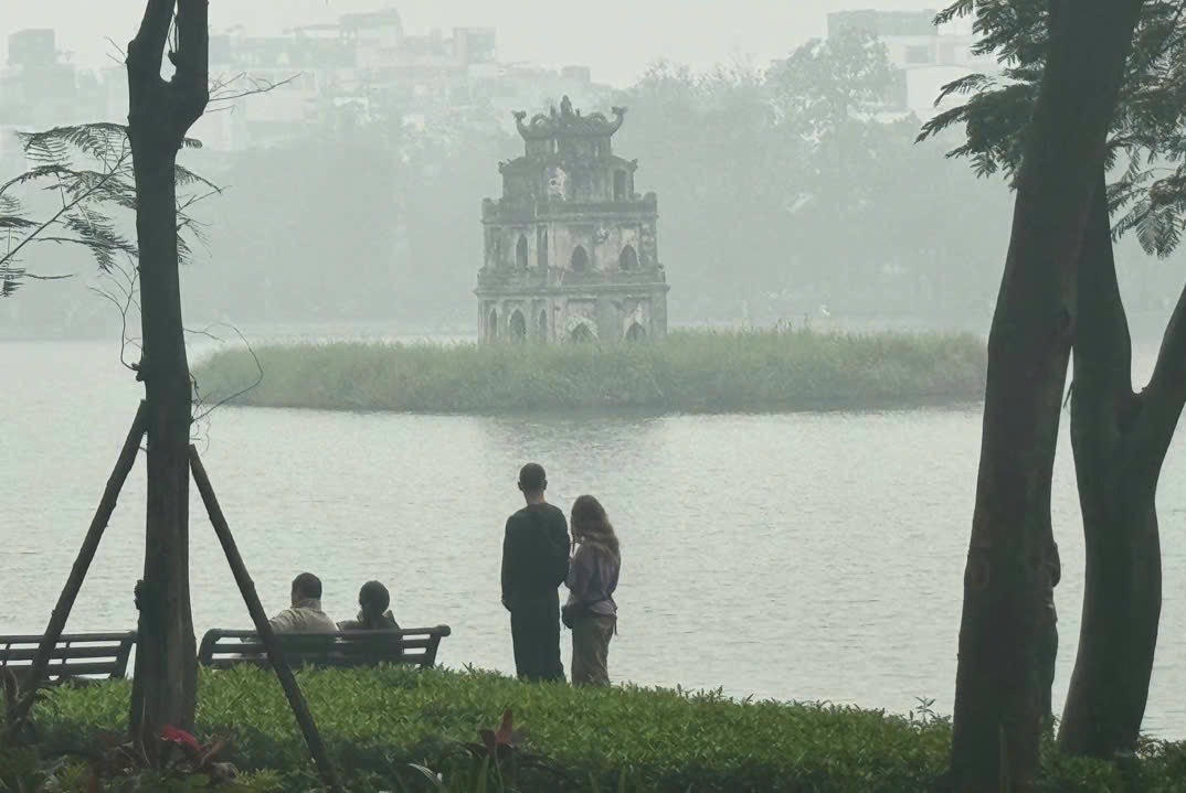 Hồ Gươm trưa ngày 10/11 không khí nồm ẩm rõ rệt. Ảnh: Hoàng Thu Phố.