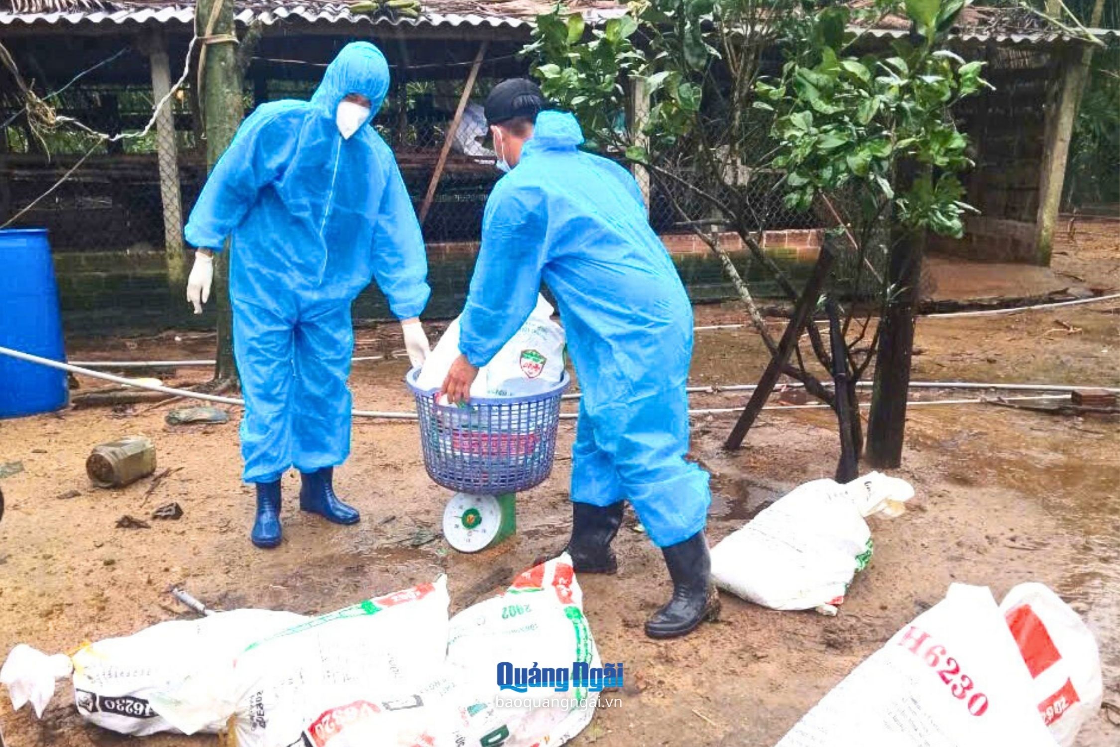 Tiêu hủy gia cầm mắc bệnh tại xã Trường Giang. Ảnh: ĐVCC