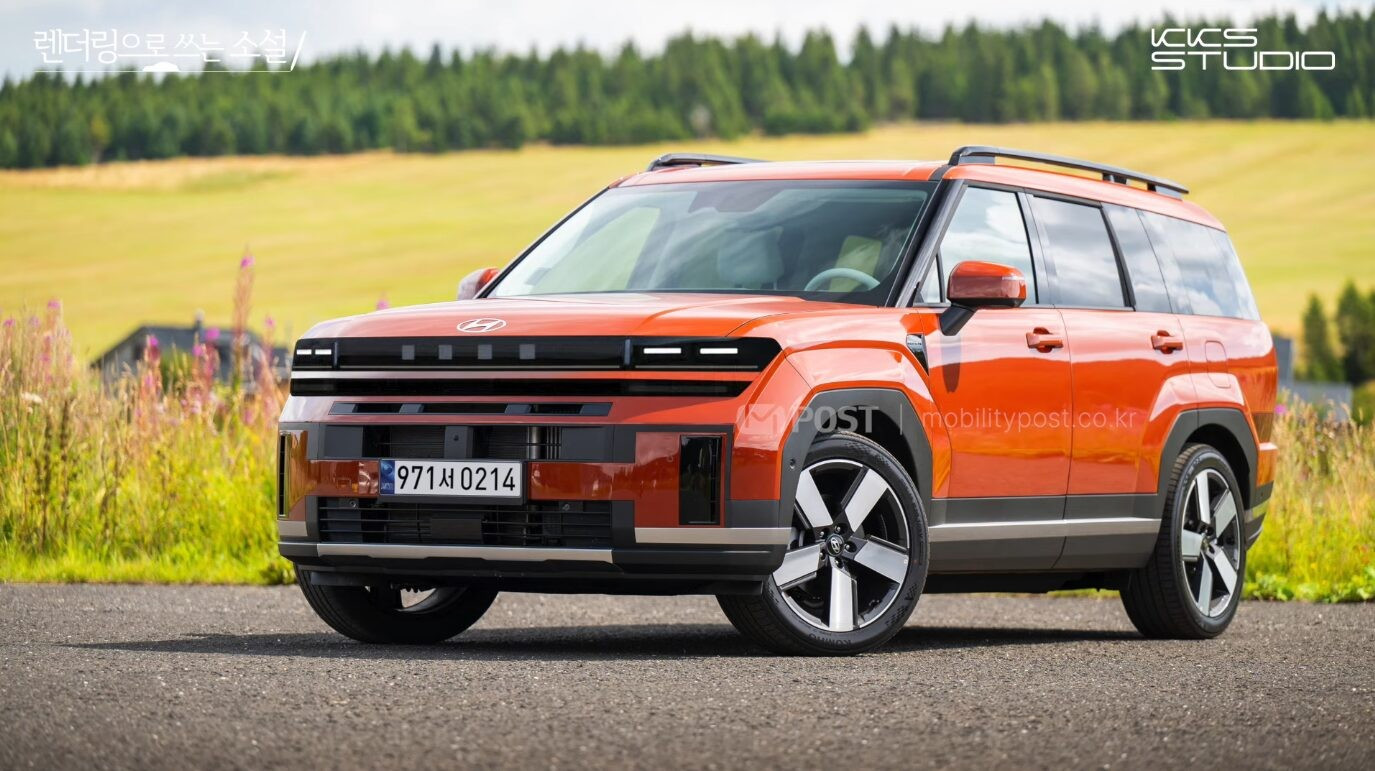 Ảnh đồ họa dự đoán thiết kế của Hyundai Santa Fe facelift.