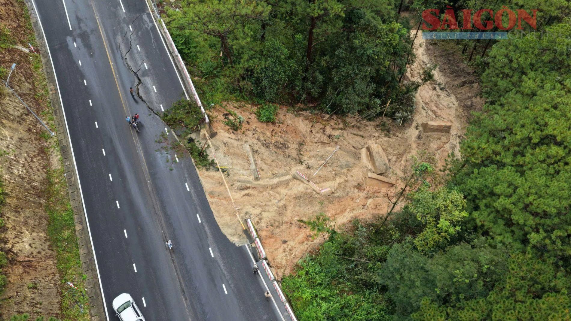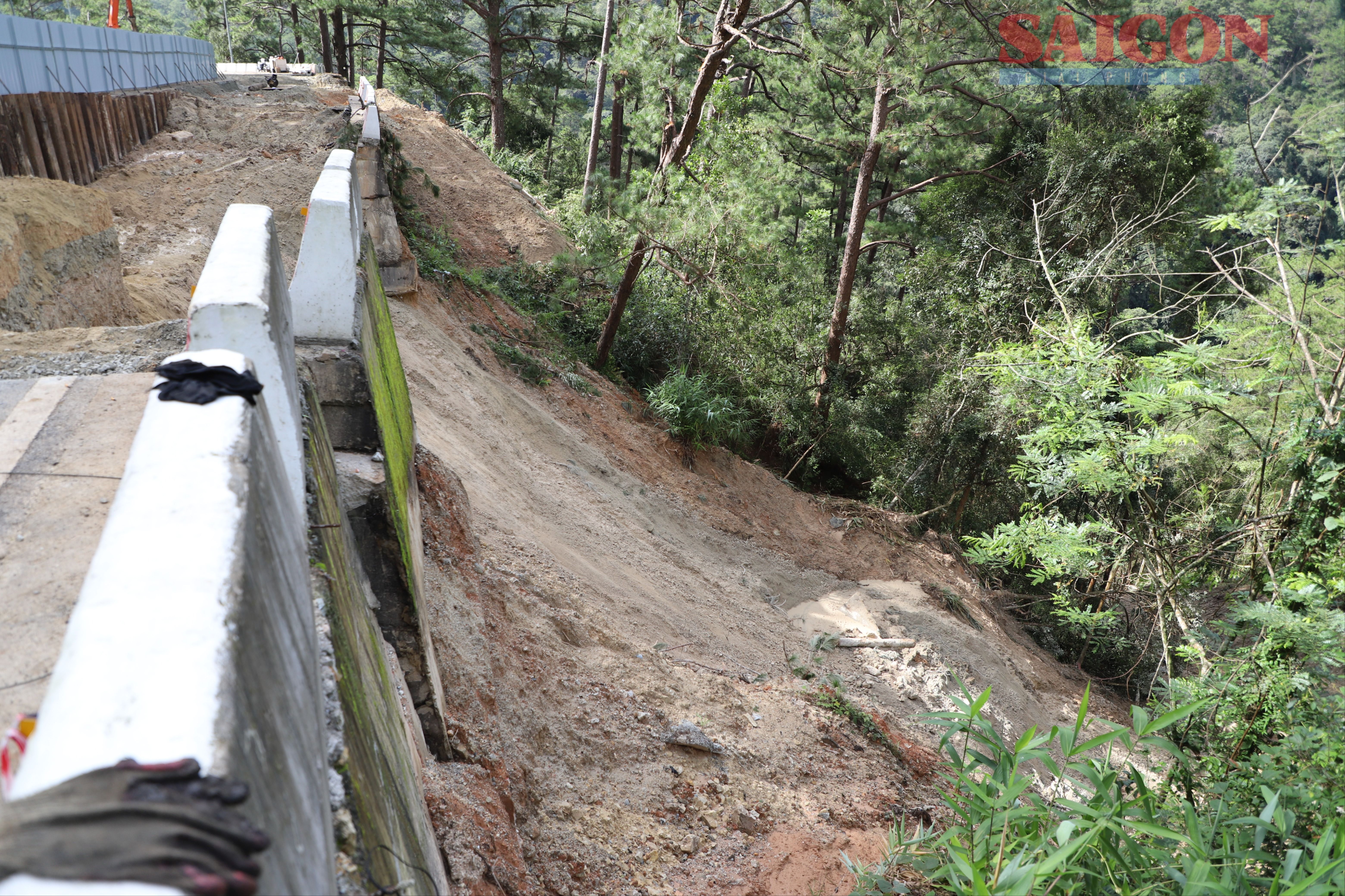 Hiện trạng khu vực xảy ra sự cố sạt lở bờ taluy âm trên đèo Prenn sau 1 tuần