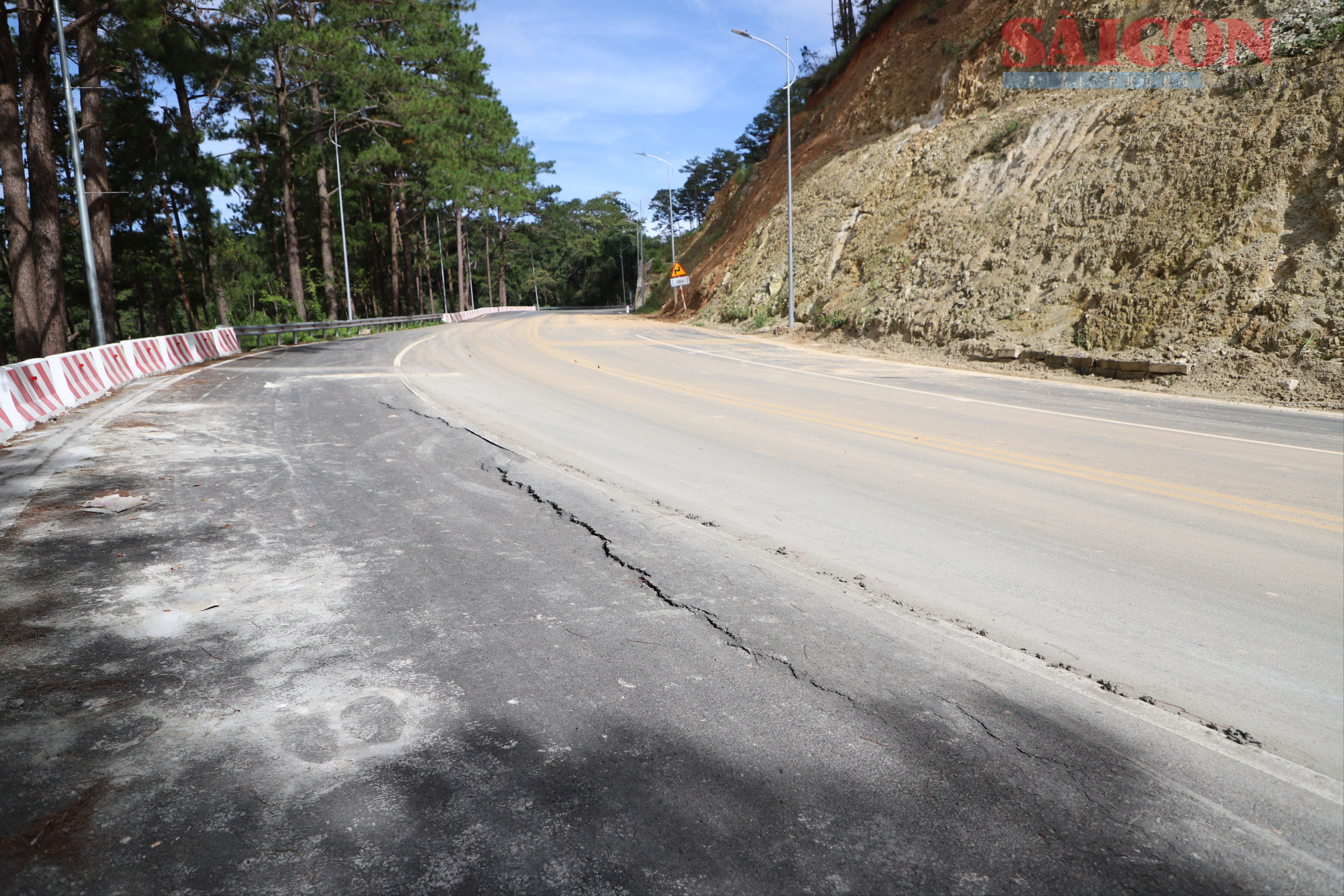 Tại đoạn Km224+600 đến Km224+700 đường đèo Prenn khoảng 100m sạt lở kè chắn taluy âm (từ ngày 17-11), đã được cơ quan chức năng đóng cọc cừ ván thép khoanh vùng khu vực sạt lở, bóc tách bề mặt nhựa đường.