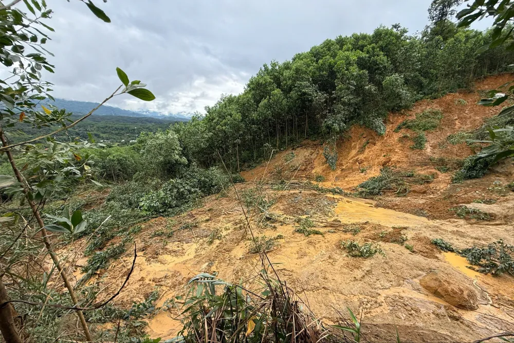 Tại hiện trường, vết nứt lớn kéo dài hơn 100 m, sạt trượt sâu 1 m. Ngay phía dưới chân núi là khu dân cư có gần 20 hộ dân sinh sống. Phần chân đồi đã xuất hiện hiện tượng chảy trào đất bùn, tạo thành một hố bùn non lớn, nguy cơ sạt lở rất cao.