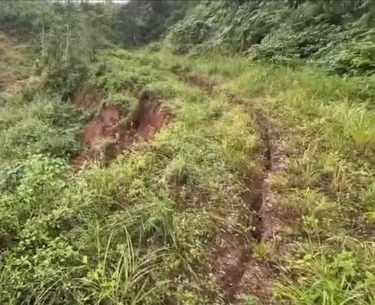 Theo ông Nguyễn Phúc Nhân, hai vệt nứt núi được phát hiện tại dốc 3 tầng, thuộc địa phận giữa xã Măng Đen và xã Kon PLông (Quảng Ngãi).