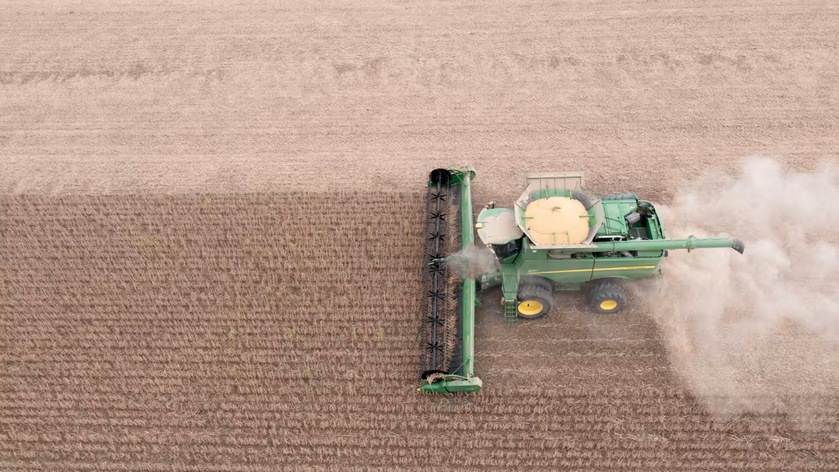 Một máy gặt liên hợp thu hoạch đậu tương tại bang Ohio. Năm 2025, Mỹ xuất khẩu nhiều đậu tương hơn sang các nền kinh tế mới nổi - Ảnh: Reuters