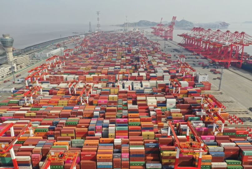 Container hàng hóa chờ xuất khẩu ở cảng Dương Sơn ở vịnh Hàng Châu, phía nam Thượng Hải, Trung Quốc. Ảnh: Getty Images