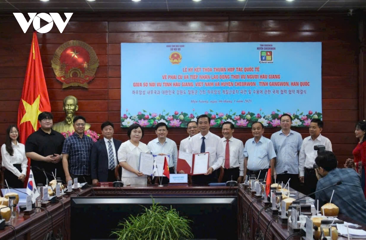 Lễ ký kết thỏa thuận hợp tác quốc tế về phái cử và tiếp nhận lao động thời vụ người nước ngoài giữa huyện Cheorwon, tỉnh Gangwon, Hàn Quốc và Sở Nội vụ tỉnh Hậu Giang cũ (nay thuộc thành phố Cần Thơ)