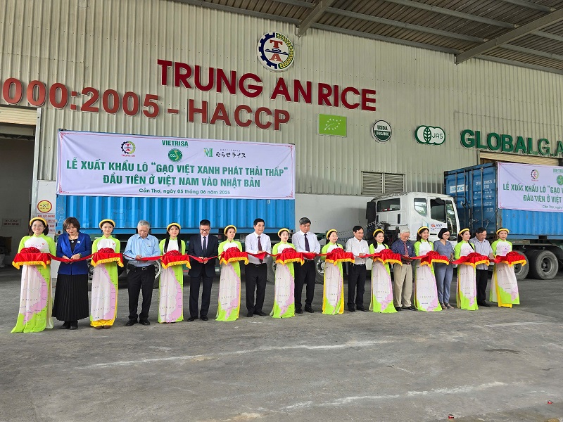 Chiều ngày 5/6 tại Cần Thơ, Hiệp hội Ngành hàng lúa gạo Việt Nam (VIETRISA) phối hợp với Công ty cổ phần nông nghiệp công nghệ cao Trung An tổ chức lễ xuất khẩu lô hàng “Gạo Việt xanh phát thải thấp” đầu tiên sang Nhật Bản.