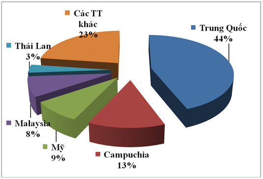 Đứng thứ 2 về kim ngạch là thị trường Campuchia chiếm tỷ trọng 12,81%, đạt trên 128,73 triệu USD, tăng 38,79%.