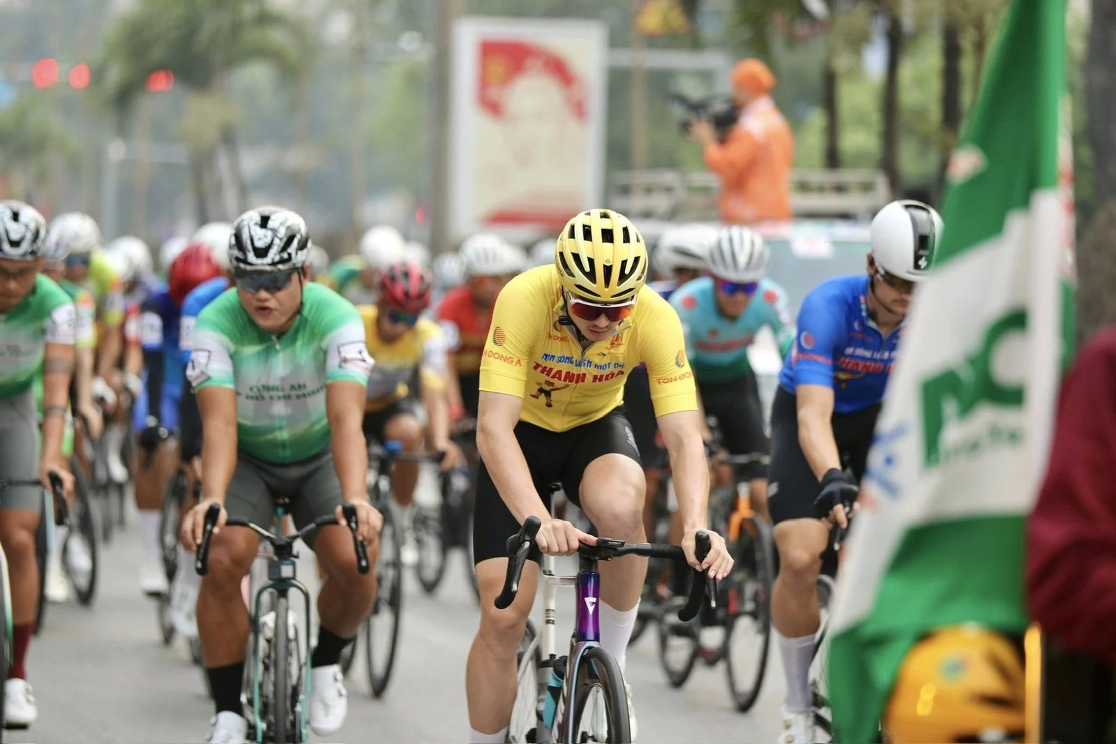 Tay đua người Belarus Marchuk Dzianis (đội Kenda Đồng Nai) đang tạm giữ áo vàng sau chặng 4.