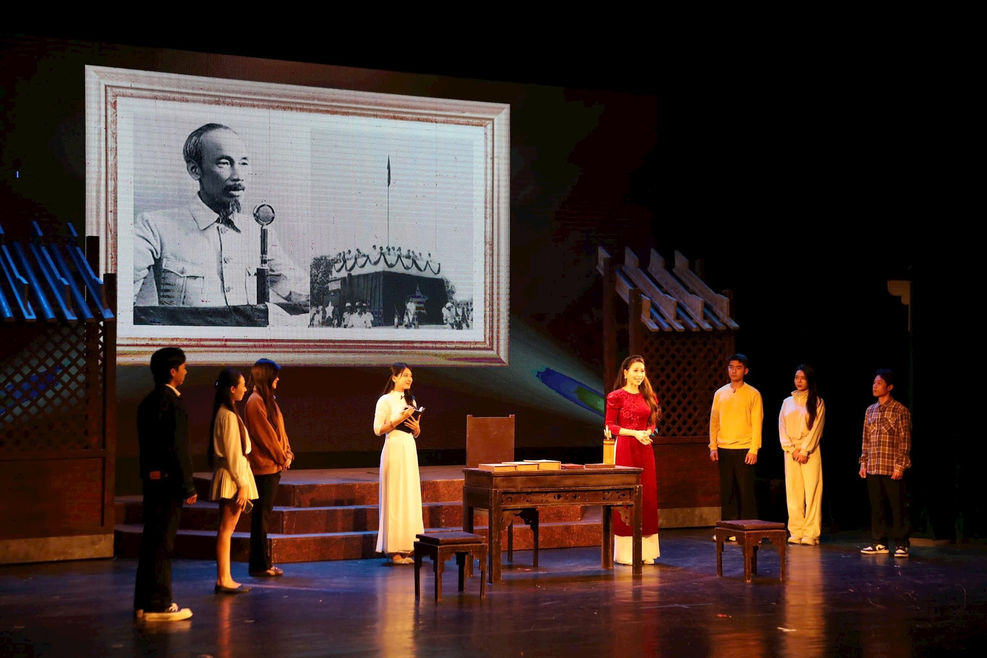 Chương trình sinh hoạt chính trị với chủ đề “Tự hào 96 năm Đảng Cộng sản Việt Nam – Đảng quang vinh, vững bước kỷ nguyên mới” tại Nhà hát Tuổi trẻ Việt Nam. Ảnh: Nguyên Anh