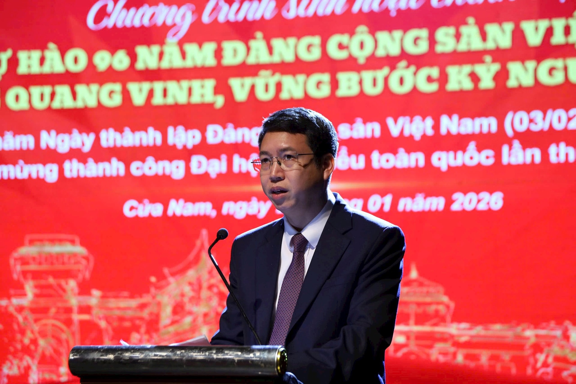 Phát biểu khai mạc, Bí thư Đảng ủy, Chủ tịch HĐND phường Cửa Nam Nguyễn Hoàng Trường khẳng định, trong suốt 96 năm qua, dưới sự lãnh đạo của Đảng, dân tộc Việt Nam đã đi từ thân phận nô lệ đến độc lập, tự do; từ chiến tranh, mất mát đến hòa bình, ổn định; từng bước phát triển kinh tế - xã hội và hội nhập quốc tế ngày càng sâu rộng.