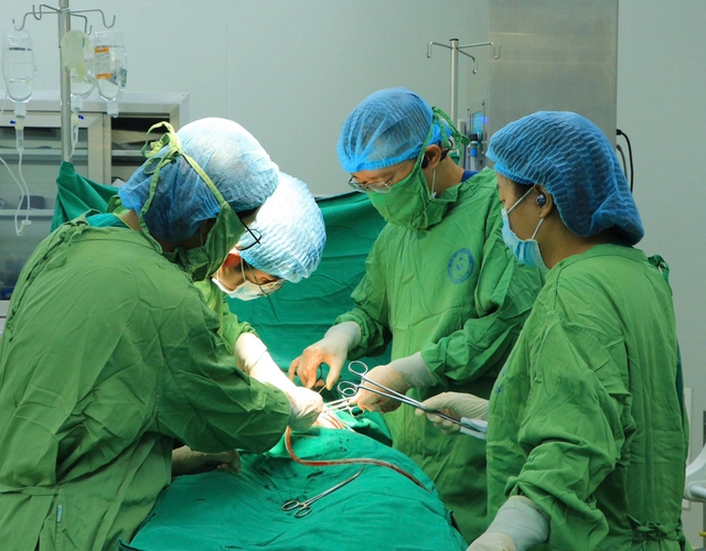 Các bác sĩ phẫu thuật cho sản phụ. Ảnh: BVCC.