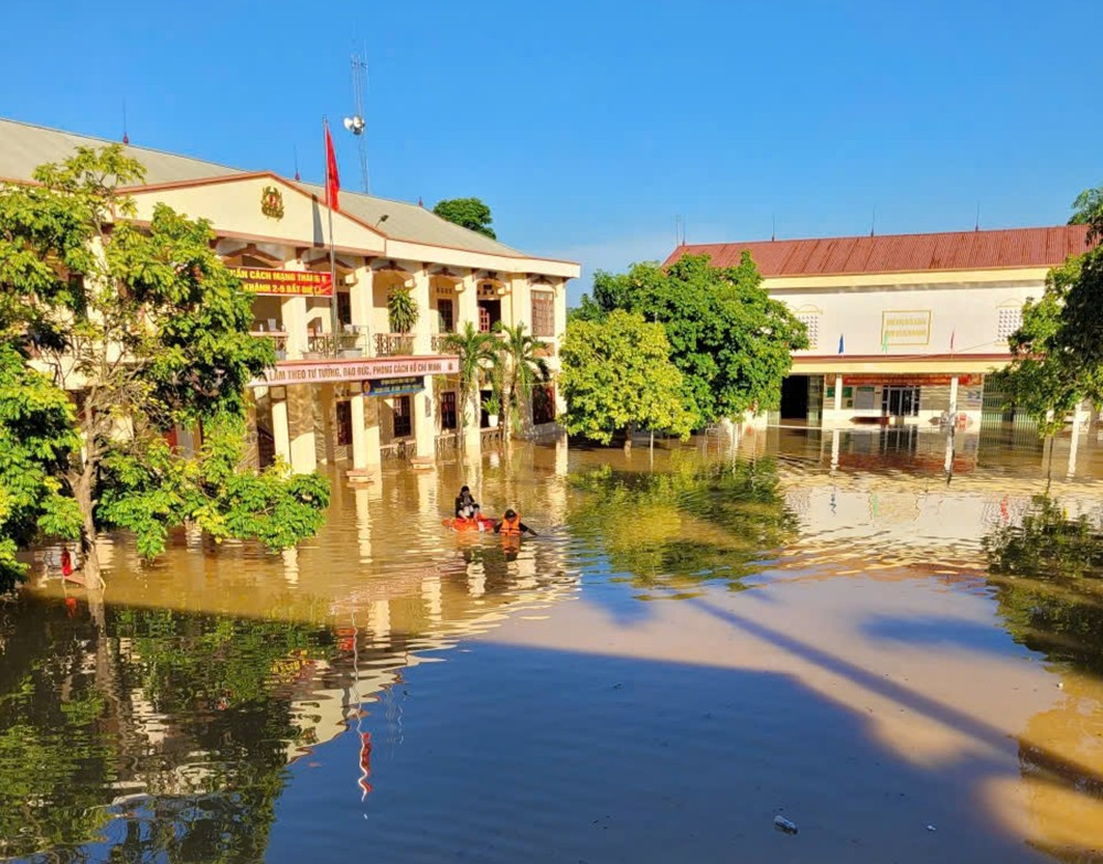 Trụ sở Công an xã Công an xã Mỹ Thái ngập sâu trong nước lũ.